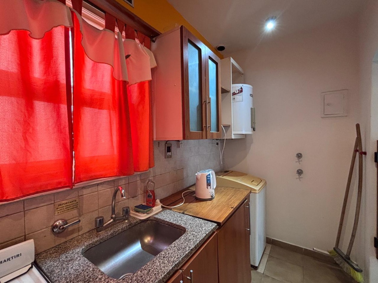 La unidad se encuentra totalmente equipada y lista para habitar. Dispone de ambiente principal con balcon saliente, el espacio cuenta con un placard empotrado y cama marinera de una plaza, cocina separada completa incluido lavarropas, y baño con ducha.