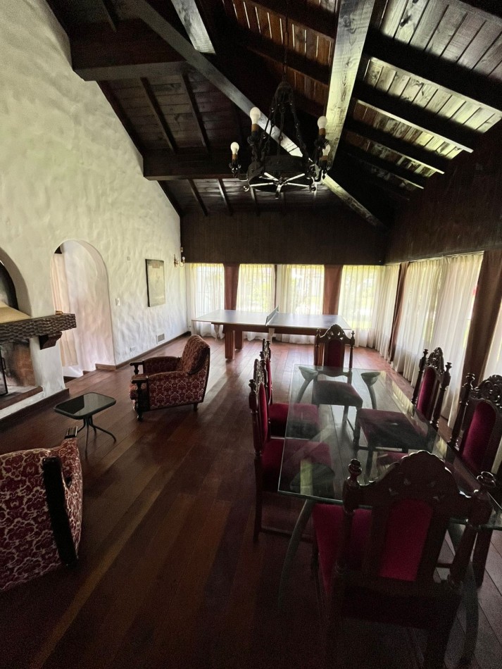 La propiedad principal se desarrolla sobre un amplio lote y ofrece cómodos y luminosos ambientes. Cuenta con un gran living comedor y una sala de estar con hogar, con salida directa al parque. La cocina comedor es espaciosa, con vista abierta al jardín, ideal para el uso diario y estadías prolongadas.