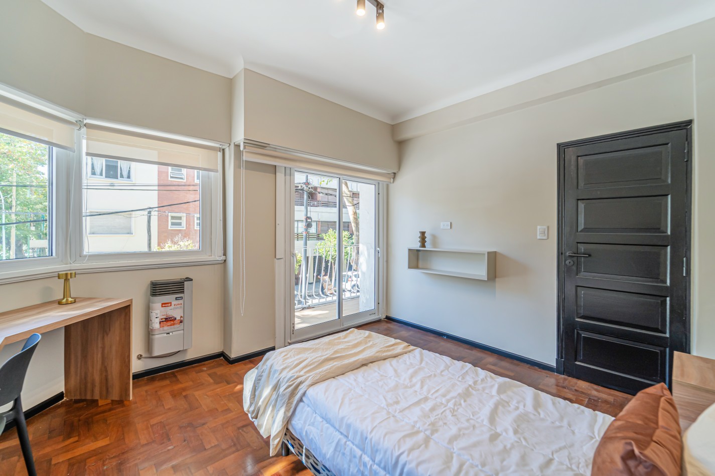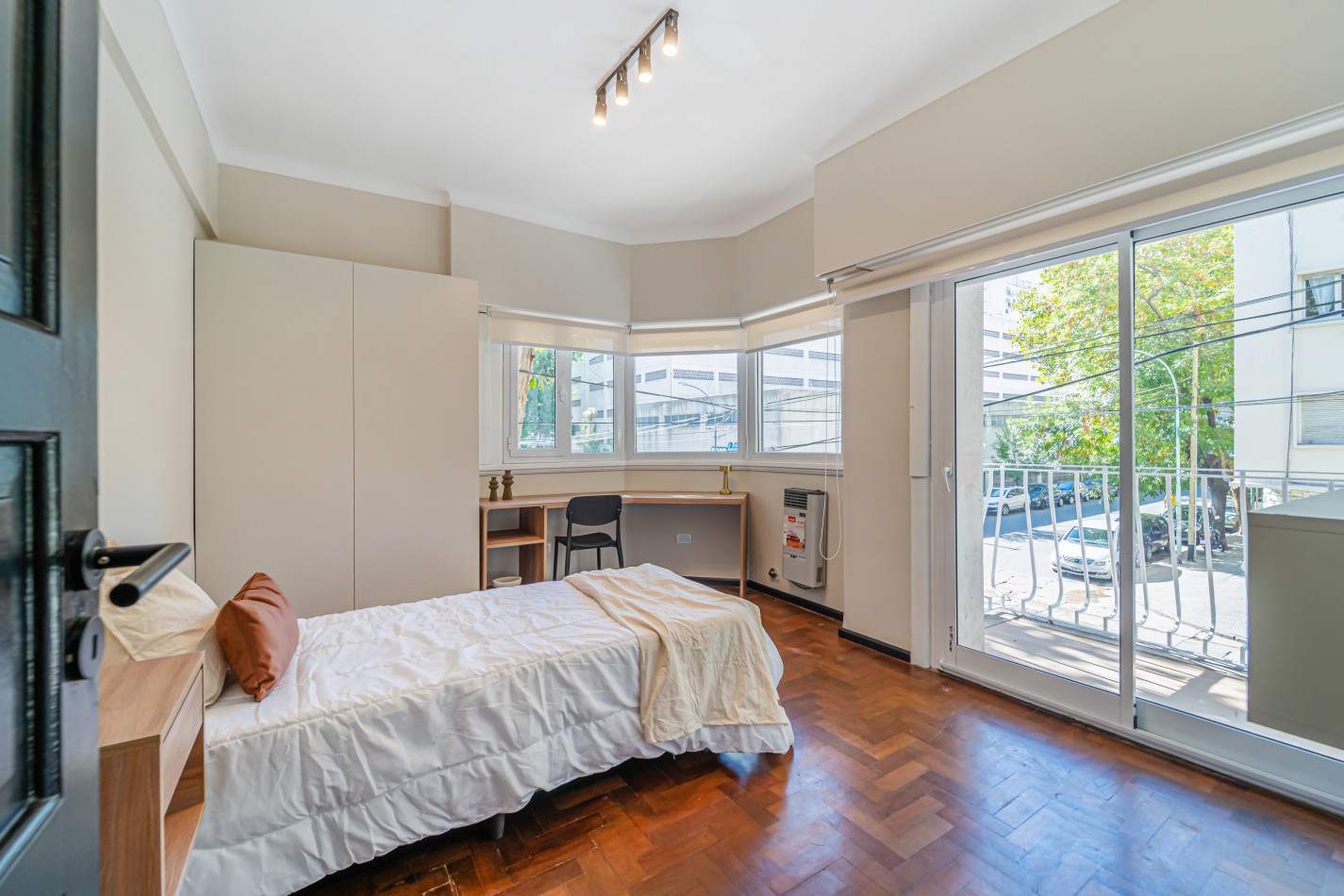 Dispone de dos dormitorios, ambos con balcón saliente al frente, lo que aporta buena ventilación y conexión con el exterior. Completa la unidad un baño completo.