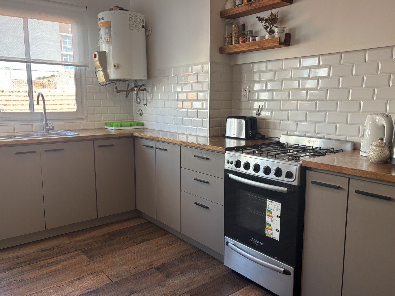 La propiedad ofrece un amplio living comedor muy luminoso, con balcón francés a la calle que aporta ventilación y un agradable ingreso de luz natural. La cocina integrada se presenta totalmente equipada, con amoblamientos a medida y diseño funcional, acompañada por un lavadero cubierto que suma practicidad al uso diario.