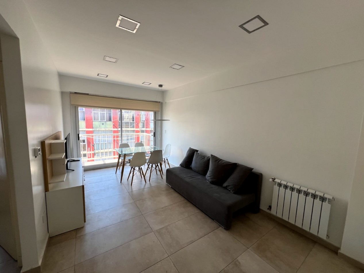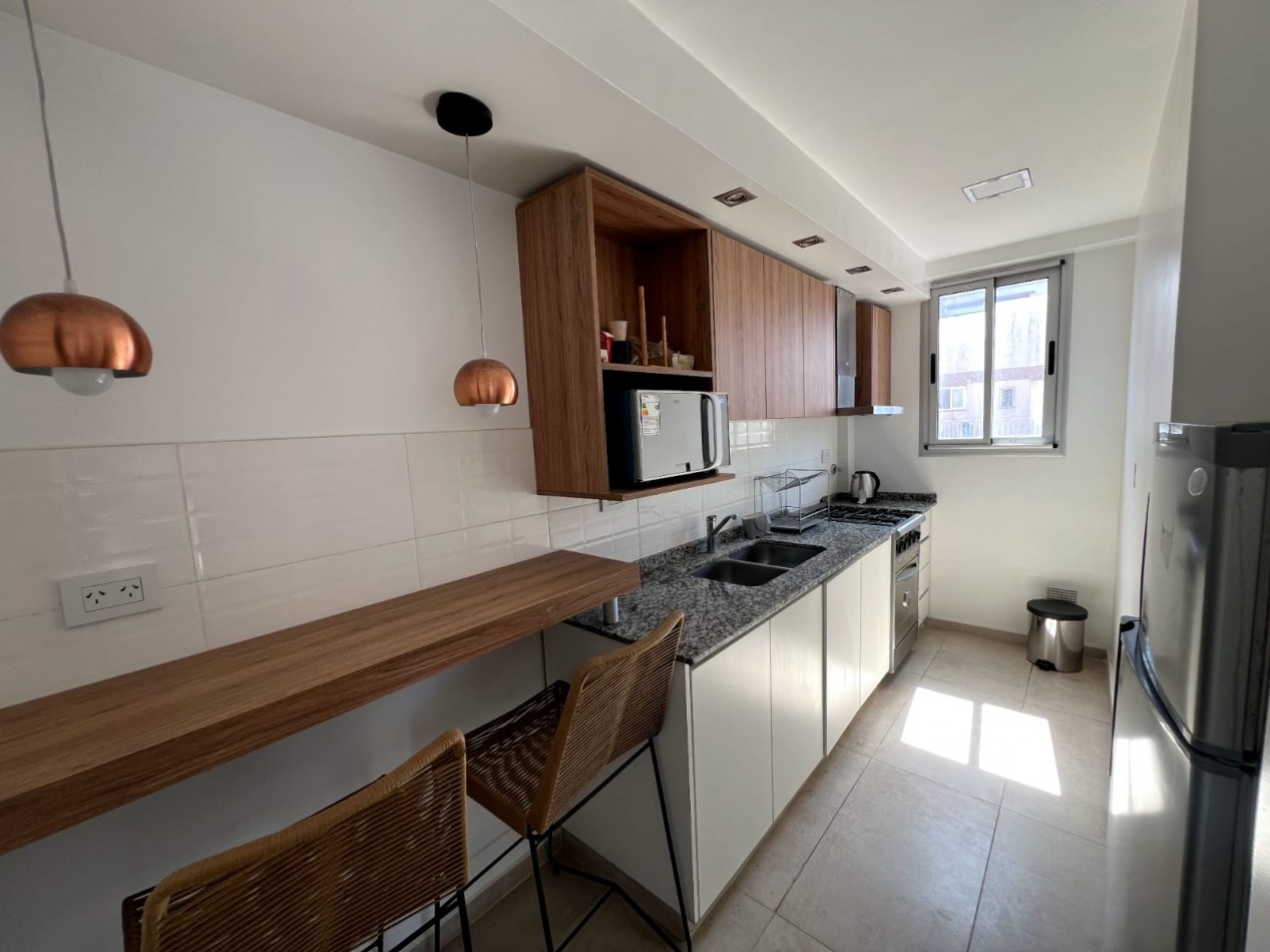 Con una superficie total de 45 m², el departamento ofrece un luminoso living-comedor con salida al balcón, lo que permite disfrutar de la vista y del aire fresco de la ciudad. La cocina se encuentra totalmente separada, equipada con amoblamientos a medida y conexión para lavarropas, pensada para brindar practicidad en el día a día. El dormitorio también da a la calle y cuenta con un amplio placard empotrado hecho a medida, maximizando el espacio de guardado. El baño es completo con ducha, de estilo moderno y funcional.