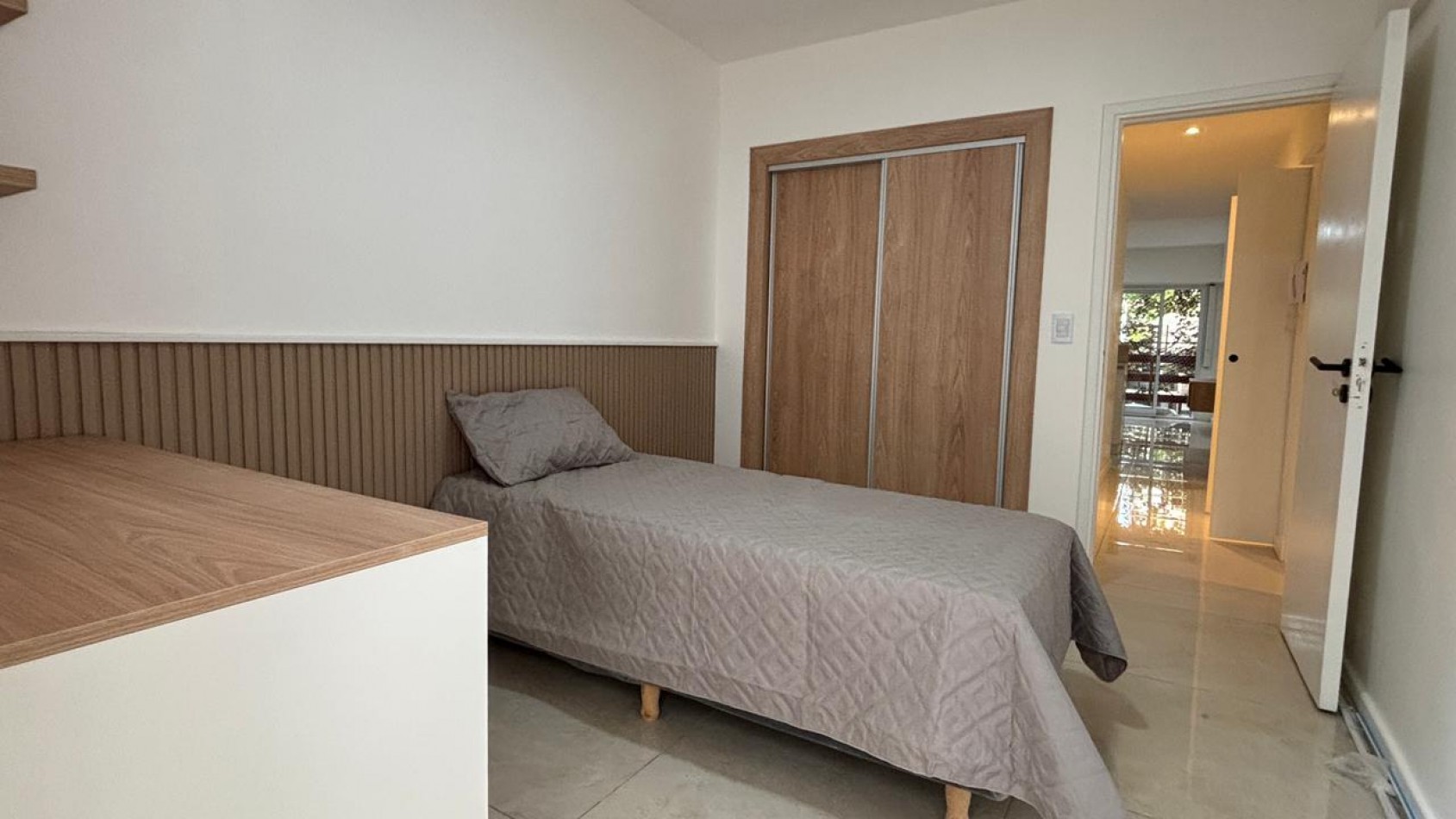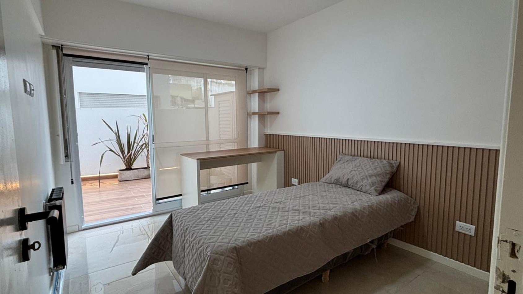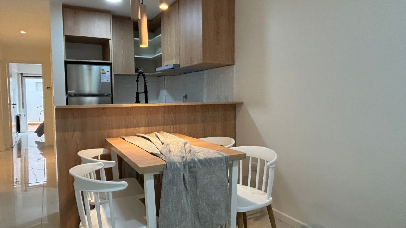 La propiedad se destaca por su excelente distribución y luminosidad. Cuenta con un amplio living comedor con cocina integrada, generando un espacio moderno y funcional, con salida a balcón saliente al frente. Además, dispone de lavadero separado, baño completo y dos dormitorios con placares a medida. El dormitorio principal es en suite, mientras que el secundario ofrece escritorio y salida a un patio, ideal para home office o espacio de relax.