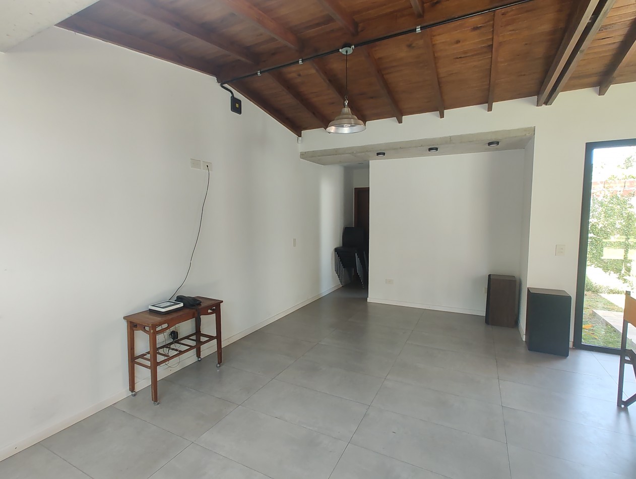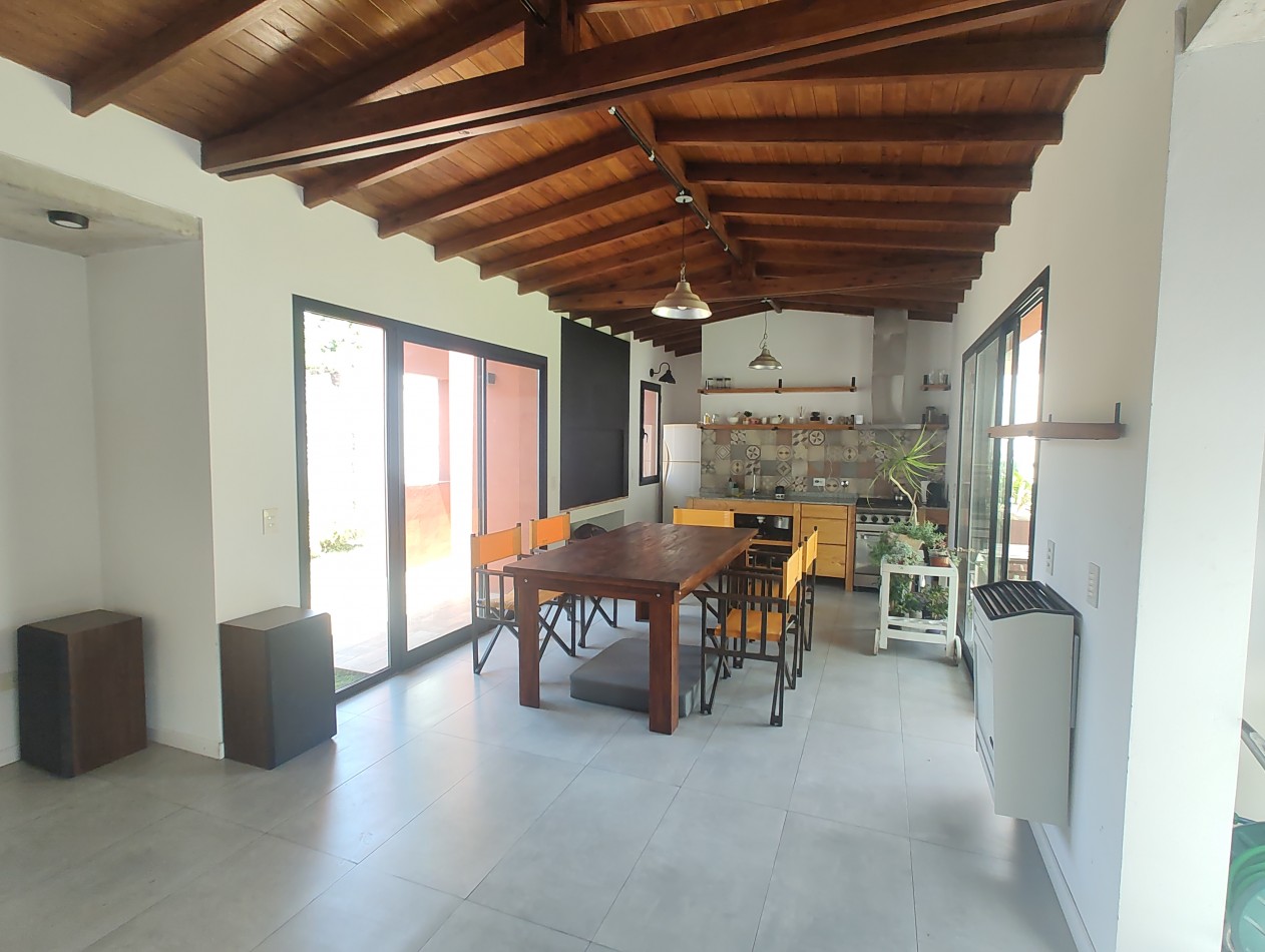 El quincho cuenta con amplias dimensiones internas y un diseño moderno de concepto abierto, que integra los distintos ambientes y potencia la luminosidad natural. Las aberturas con doble vidrio hermético (DVH) permiten una excelente entrada de luz y una conexión visual constante con el exterior, generando un ambiente cálido y armonioso.