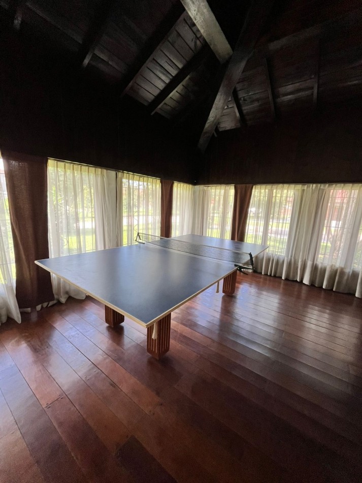 La propiedad principal se desarrolla sobre un amplio lote y ofrece cómodos y luminosos ambientes. Cuenta con un gran living comedor y una sala de estar con hogar, con salida directa al parque. La cocina comedor es espaciosa, con vista abierta al jardín, ideal para el uso diario y estadías prolongadas.