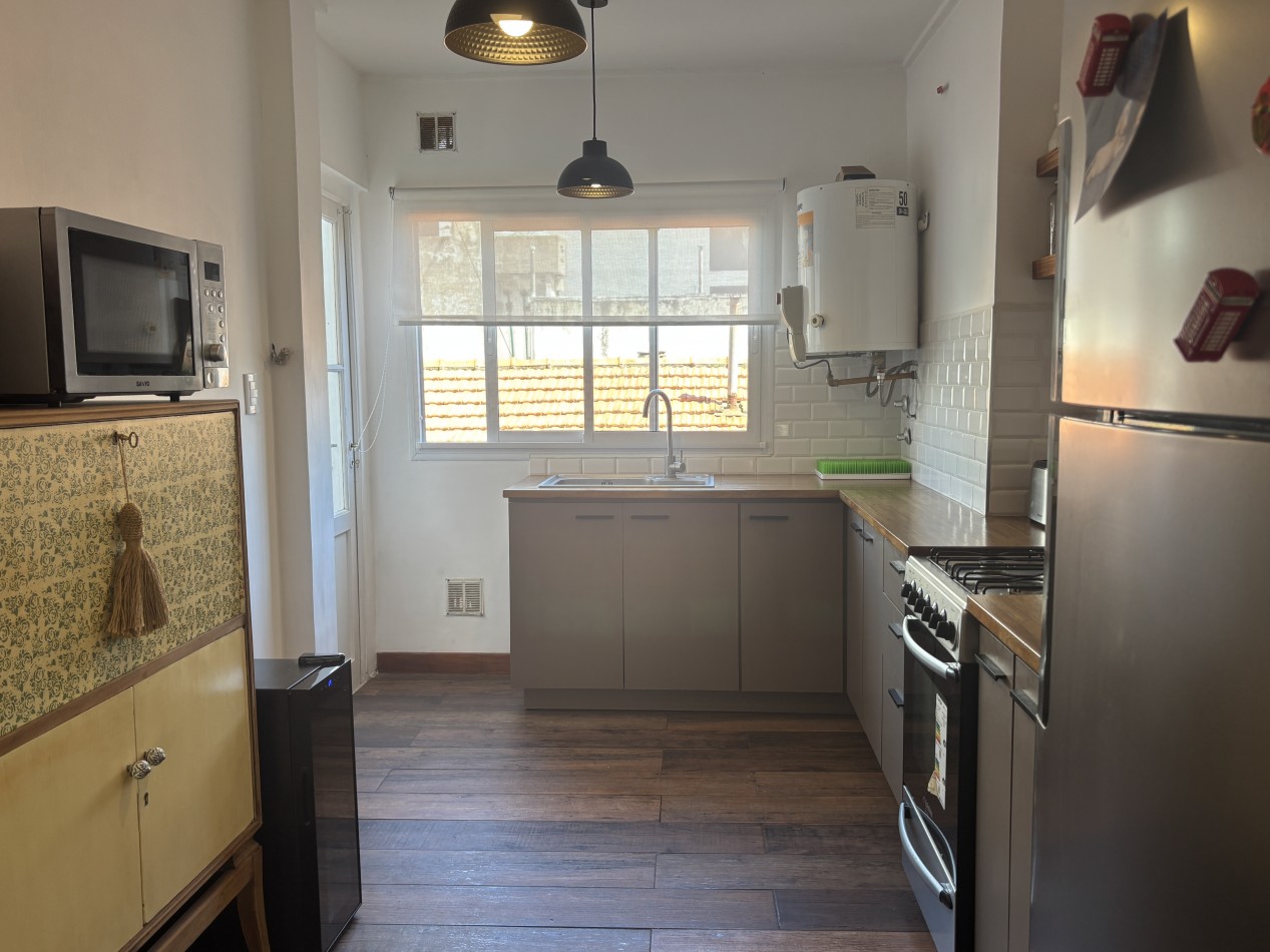 La propiedad ofrece un amplio living comedor muy luminoso, con balcón francés a la calle que aporta ventilación y un agradable ingreso de luz natural. La cocina integrada se presenta totalmente equipada, con amoblamientos a medida y diseño funcional, acompañada por un lavadero cubierto que suma practicidad al uso diario.